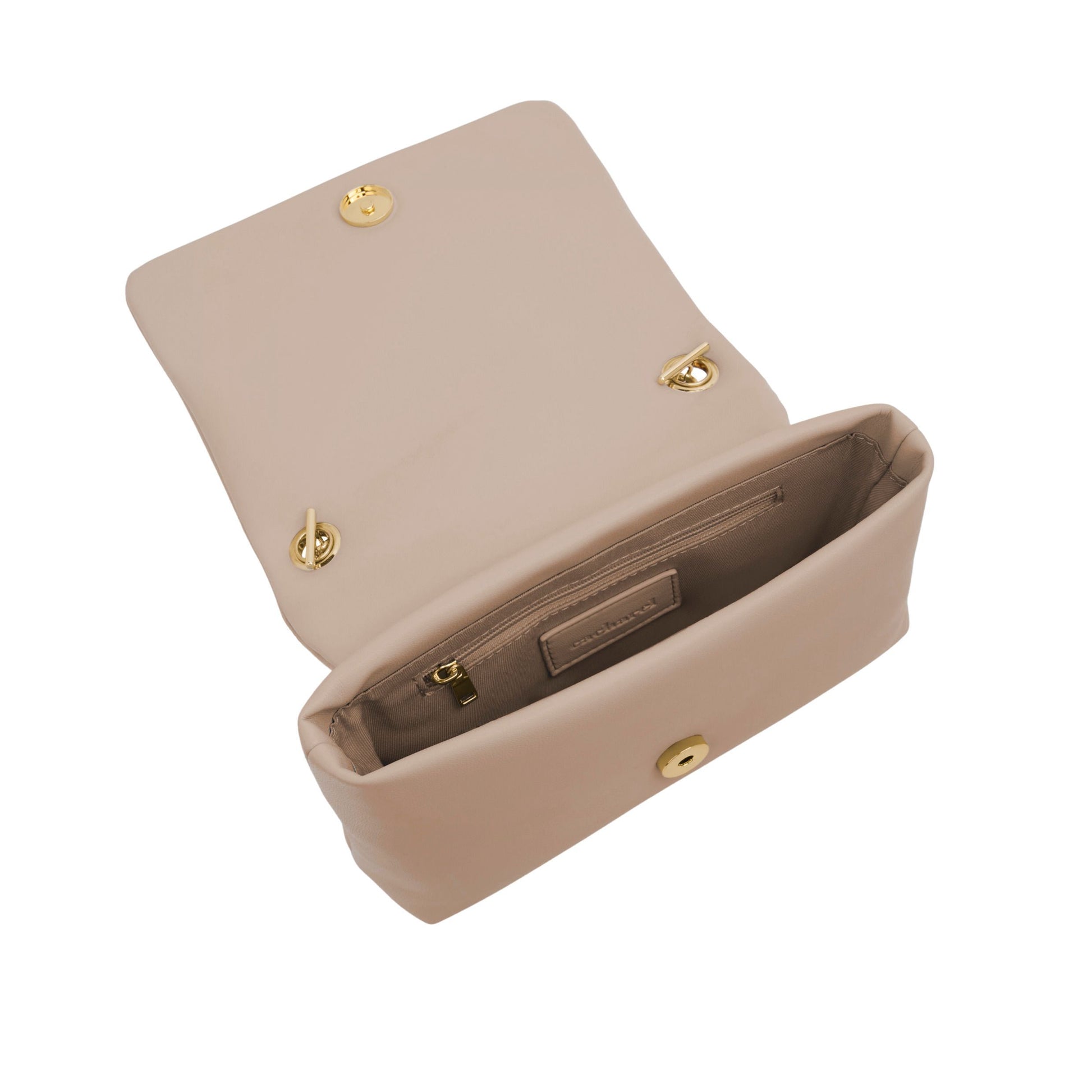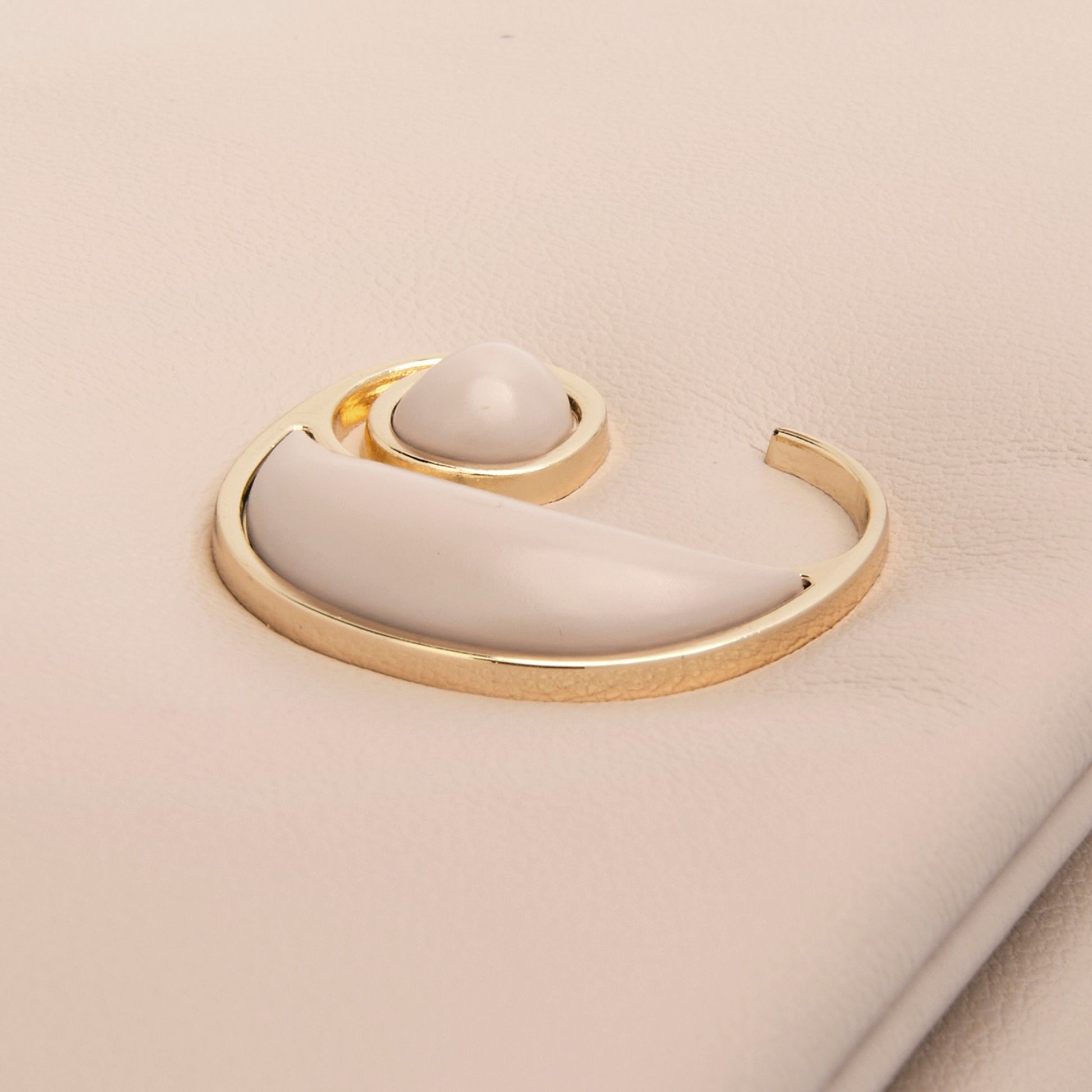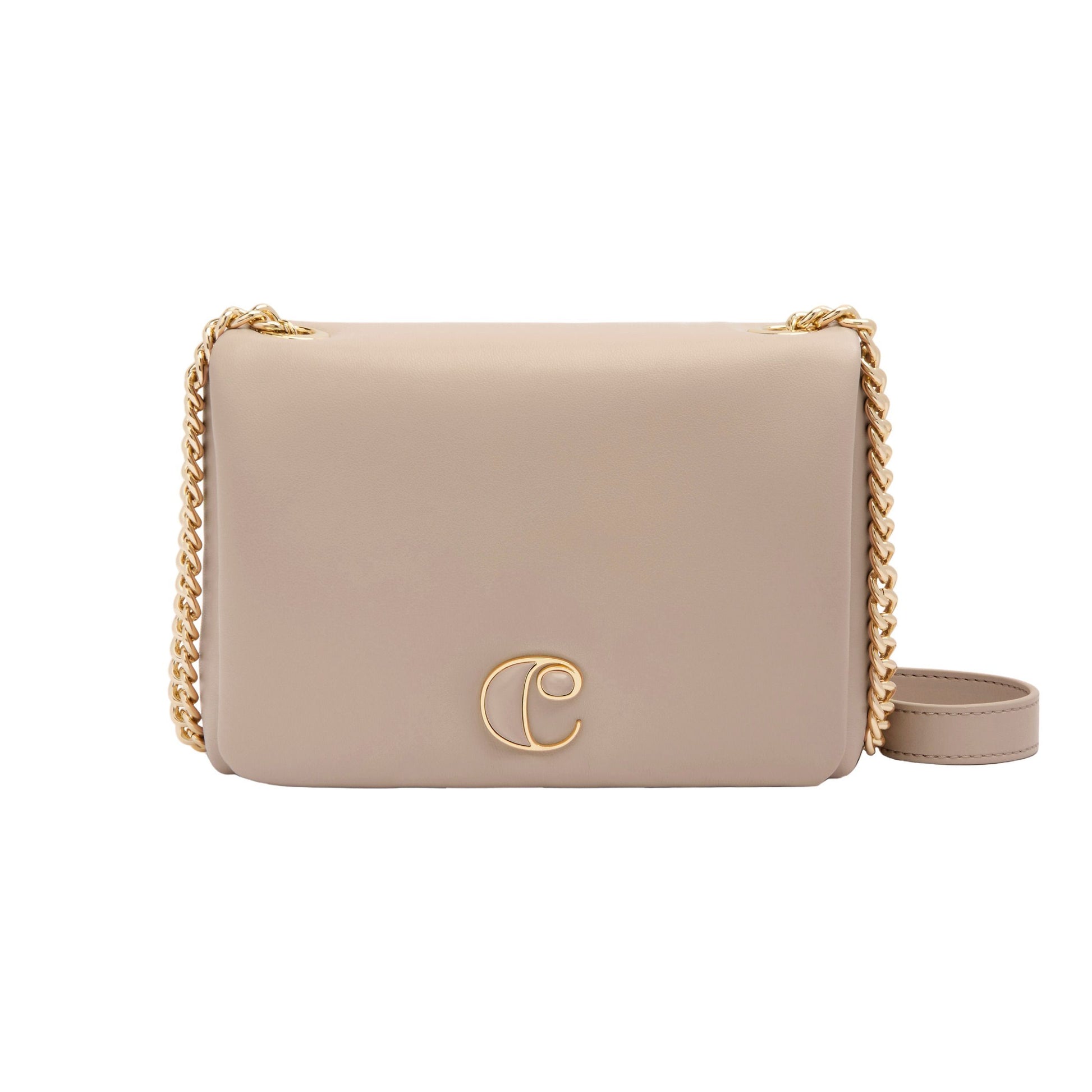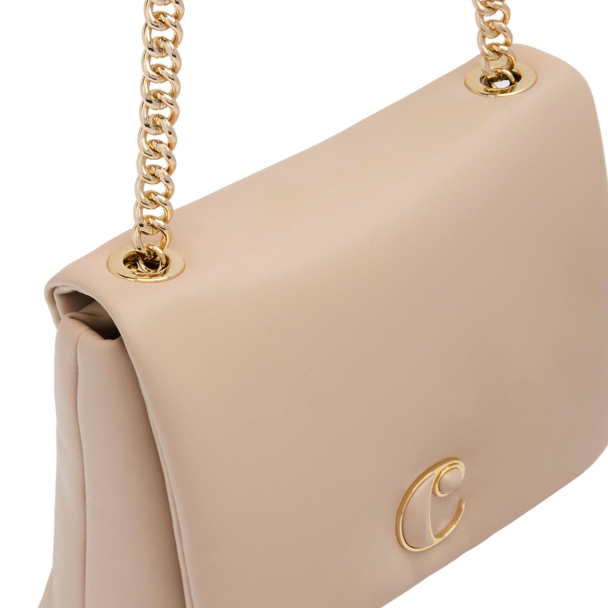 The "Vivienne" small bag in nude is a refined expression of elegance and softness. Crafted from high-quality, soft matte vegan leather (PU) with a padded effect, it boasts a sleek and contemporary design. The warm nude tone is complemented by luxurious gold trims, while the gold "C" logo plate with a nude ABS finish seamlessly matches the bag's color, adding a polished and cohesive detail. This crossbody bag features a strap made of PU and metal chain, adaptable in length for versatile styling. Compact yet functional, it is ideal for carrying essentials with style, making it the perfect accessory for any occasion.